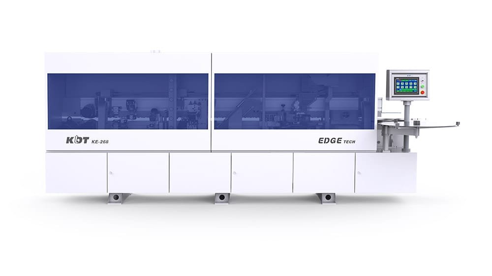 Conta com prensor de ajuste automático que reduz o tempo de setup, tupia de entrada com fresas de diamante para maior durabilidade, e sistema de pré-fusão com limpeza automática do rolo de cola. Os ajustes pneumáticos dos grupos permitem rápida troca entre fitas de borda de diferentes espessuras (dupla linha de trabalho), enquanto as unidades de refilo e raspador com copiador nesting garantem um acabamento perfeito, mesmo em peças com pré-furação.