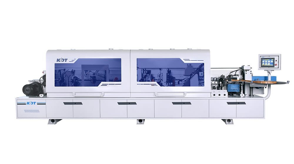 O sistema de corrente com sapatas antiderrapantes garante aderência e precisão no avanço das peças, enquanto o grupo de pressão superior motorizado permite ajustes automáticos via painel com posições memorizadas, facilitando o dia a dia produtivo. Conta ainda com guias cromadas com relógio indicador, cabine com proteção acústica e iluminação, além de leitura eletrônica por encoder para o posicionamento dos grupos.